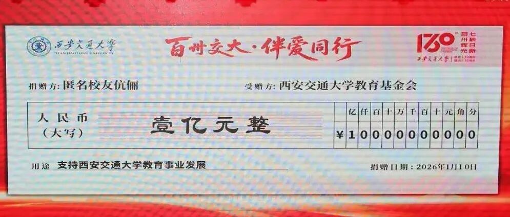 西安交大百卅校庆,校友夫妇匿名捐赠1亿元