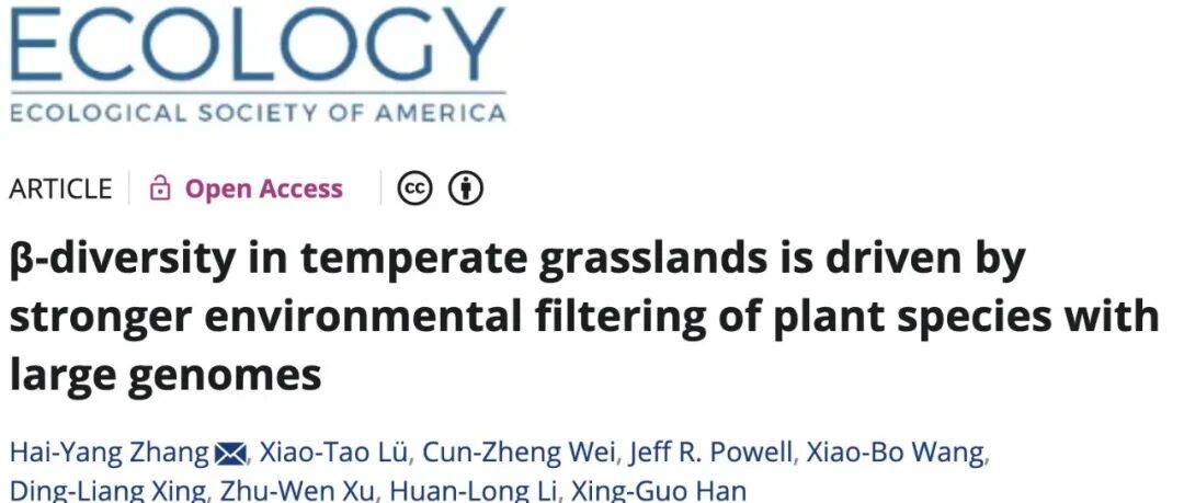 温带草原的β多样性受环境过滤的大型基因组植物物种驱动