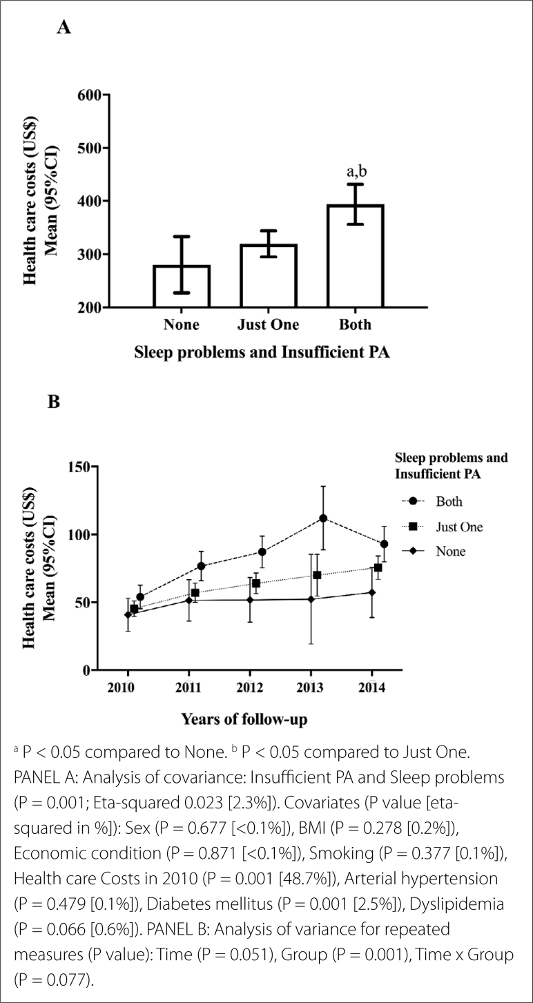 Conclusion: The combination of sleep problems and insufficient PA plays an important role in increasing direct healthcare costs in adults. Public health stakeholders, policymakers, and health professionals can use these results to reinforce the need for strategies to improve sleep quality and increase PA, especially in nations that finance their National Health Systems.