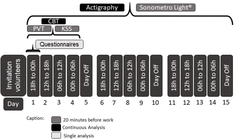 The present study used four different methods to estimate fatigue. Forty-seven volunteers (45 men and 2 women), 41.3 ± 7.5 years old, truck operators for 11.5 ± 6.0 years, were included. All participants accepted the invitation to be included in the study. Actigraphy and core temperature were evaluated. The 5-minute psychomotor vigilance test, the Karolinksa Sleepiness Scale (KSS), and the postural assessment using the Light Sonometer™ (Belo Horizonte, Minas Gerais, Brazil) were performed. Fatigue prediction was performed using the Fatigue Avoidance Scheduling Tool (FAST) program. In response to the Pittsburgh Sleep Quality Index (PSQI), 51.06% had good sleep quality and 48.94% had poor sleep quality with an average efficiency of 81.6%. In response to the actigraphy, workers slept an average of 7.2 hours a day with 93.5% efficiency. The workers' core body temperature (CBT) cosinor analysis showed a preserved circadian curve. Core body temperature showed differences between the 6 hours worked in each shift. Similarly, the light sound level meter showed lower risk scores for fatigue in day shifts. Only the variable of the fastest 10% of the Psychomotor Vigilance Test (PVT) showed worse results, while no significant differences were observed by the KSS. The risk analysis by FAST showed a strong influence of the circadian factor. In conclusion, each method has positive and negative points, and it is up to the evaluator/manager to identify the method that best suits the purpose of the evaluation, as well as the local culture and conditions. We recommend using different methods of risk assessment and management in combination with fatigue prediction by Sonometer as well as carrying out assessments, which enable researchers to estimate performance and fatigue throughout the working day, since these may change over the duration of the working day.