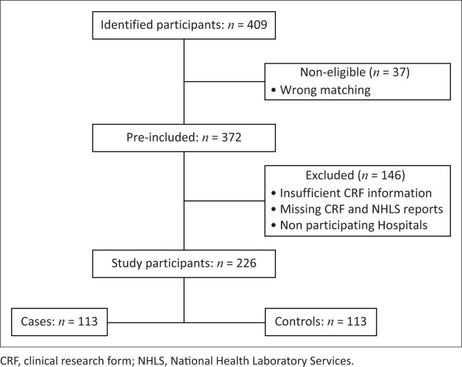 Methods: A retrospective case-control study among patients who attended Nelson Mandela Academic Hospital (NMAH) and Mthatha Regional Hospital (MRH), Eastern Cape, South Africa. Demographic, medical history and current hospitalisation factors were captured on clinical research forms. GraphPad Prism version 8 software was used for statistical analysis.