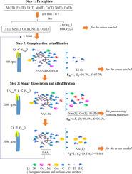 There are valuable metals in spent ternary lithium-ion batteries. A method for selective separation of Al (III), Fe (III), Li (I), Mn (II), Co (II), Ni (II) and Cu (II) from acid leaching of spent LiNi0.46Co0.2Mn0.34O2 battery was proposed. Al (III) and Fe (III) are firstly separated by chemical precipitation, and other metal ions are formed polymer-metal complexes by adding polyacrylate sodium (PAAS) as complexing agent. According to the difference of shear stabilities of PAA-metal complexes, selective separation of metal ions was fulfilled by shear induced dissociation coupling with ultrafiltration using rotating disk membrane (RDM). The shear induced dissociation mechanism of polymer-metal complex was studied. Compared with the traditional separation methods, such as acidification and extraction, shear induced dissociation coupling with ultrafiltration without the consumption of acid and alkali, is green and environmentally friendly effective method for the recovery of metal ions.