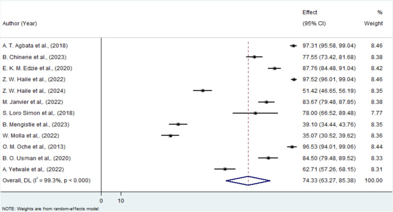 背景:产科超声(US)是一种利用声波探测孕妇腹部和骨盆区域的非侵入性成像方法。建议在怀孕期间至少进行两次超声波扫描,一次在妊娠早期,另一次在妊娠中期,以识别潜在的并发症并改善围产期结局。虽然这种做法已在发达国家广泛实施,但在许多非洲国家的利用情况仍不理想。本系统综述和荟萃分析旨在检查非洲孕妇对产科超声的知识和利用水平,为整个非洲大陆的认识和利用提供见解。方法:根据PRISMA指南进行系统评价和荟萃分析。在各种数据库中进行了广泛的文献检索,包括PubMed、b谷歌Scholar、ScienceDirect、Web of Science、Scopus和非洲在线期刊数据库。使用加权逆方差随机效应模型估计合并患病率。采用Cochrane q检验和I2统计量评估研究间的异质性,通过漏斗图和Egger检验评估发表偏倚。采用Stata v17软件分析非洲孕妇使用产科超声的相关因素。结果:最初共确定了622篇文章,其中23篇最终符合本综述的纳入标准,其中包括5项涉及产科超声知识和利用的研究。非洲孕妇对产科超声的总体知识水平估计为74.33% (95% CI 63.27-85.38%),而综合使用比例为63.3% (95% CI 51.59-75.02%)。亚组分析显示,西非孕妇的知识和利用水平最高,而东非孕妇的知识水平最低。了解产科超声的孕妇更有可能利用这项服务,合并优势比(POR)为8.41 (95% CI 4.66-12.16)。结论:本系统回顾和荟萃分析显示,非洲孕妇对产科超声的使用适度,随着时间的推移,特别是在2020年之后,有增加的趋势。产妇对产科超声知识的总体知晓程度为74.33%,知识被认为是影响超声利用的关键因素。