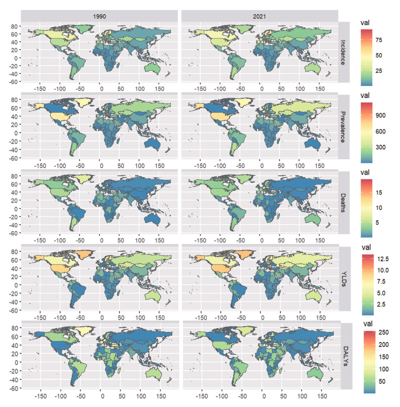 Methods: Data from the Global Burden of Disease (GBD) 2021 database were retrieved to obtain epidemiological data on female NRVHD from both global and regional perspectives, covering 204 countries and territories. Joinpoint regression, age-period-cohort analysis, decomposition, and predictive analyses were employed to further examine the epidemiological data.