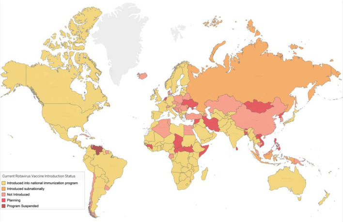 Rotavirus remains the leading cause of diarrhea among children under five years of age, with an incidence of 31.1-90.9% in Indonesia. Initially, a rotavirus vaccination program was introduced in several provinces of Indonesia in 2022, which would be conducted nationally. This review provides information on the rotavirus genotype distribution in Indonesia, efficacy and effectiveness data of the rotavirus vaccine, and an update on the status of rotavirus vaccine implementation worldwide. The results show a varied distribution of G and P genotypes from 1978 to 2018, with G1-G3, G9, P[4], P[6], and P[8] as the prevalent genotypes, followed by a small proportion of G4, P[9], P[10], and P[11]. Three rotavirus vaccines, which are prequalified by the World Health Organization (WHO) and available in Indonesia, showed an efficacy of 17.6-76.9% in high-mortality countries. The Indonesian government procured ROTAVAC with a G9P[11] genotype for the national immunization program, which showed 31.3-69.1% protective efficacy against severe gastroenteritis caused by other strains. This review suggested that the decision to choose the rotavirus vaccine for the national program should take into account the country's prevalent circulating genotype and the vaccine's efficacy against severe diarrhea. The use of a pentavalent rotavirus vaccine with high efficacy in high-mortality countries can be regarded as the prime choice for the program. Another alternative is the rotavirus vaccine, which showed efficacy data in multiple high-mortality countries. In addition, regular surveillance of the rotavirus genotypes and the clinical manifestations of diarrhea are necessary to design vaccination strategies in Indonesia.