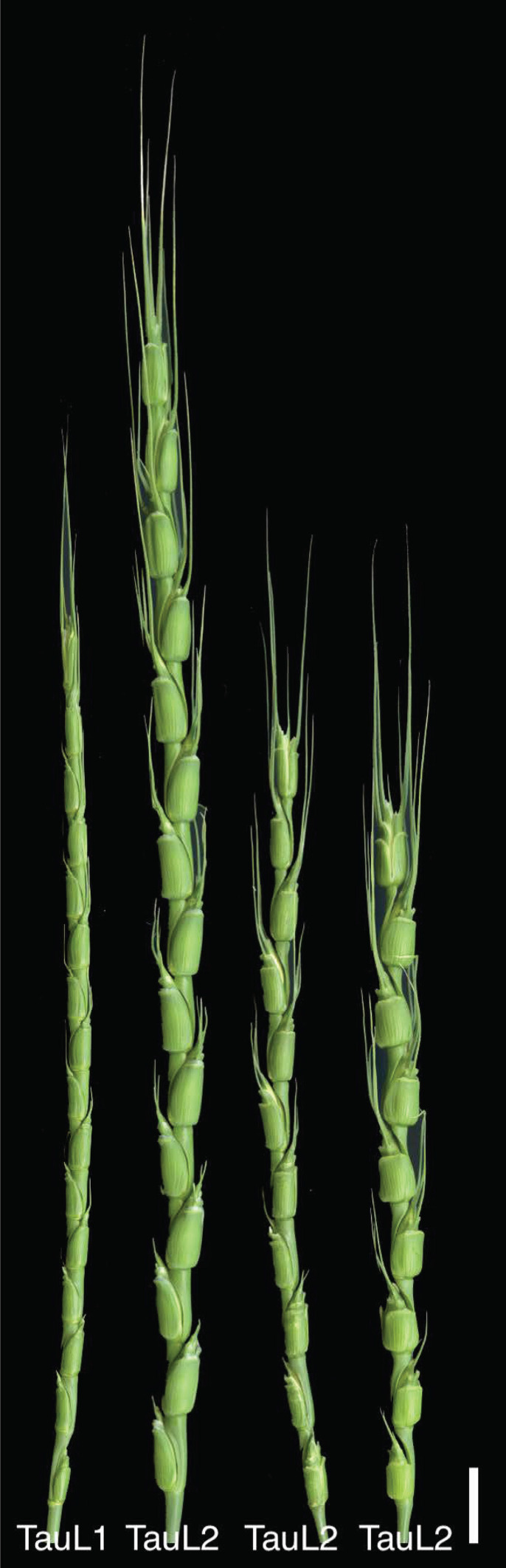 Aegilops tauschii Coss., a progenitor of bread wheat, is an important wild genetic resource for breeding. The species comprises three genetically defined lineages (TauL1, TauL2, and TauL3), each displaying valuable phenotypes in agronomic traits, including spike shape. In the present work, we studied the relationship between population structure and spike shape variation patterns using a collection of 249 accessions. f4-statistics-based ancestry profiling confirmed the previously identified lineages and revealed a genetic component derived from TauL3 in the genomes of some southern Caspian and Transcaucasus TauL1 and TauL2 accessions. Spike shape variation patterns were analyzed using a convolutional neural network-based approach, trained on green and dry spike image datasets. This analysis showed that spike shape diversity is structured according to lineages and demonstrated the potential to distinguish the lineages based on spike shape. The implications of these findings for the origins of common wheat and the intraspecific taxonomy of Ae. tauschii are discussed.