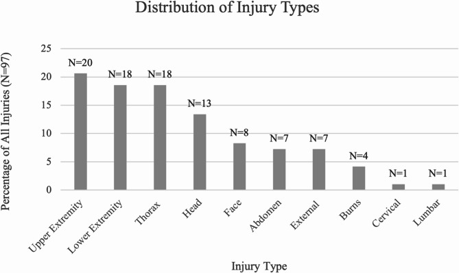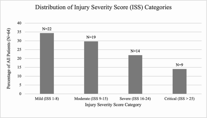 Methods: This descriptive cross-sectional study examined 64 war-related paediatric trauma patients (0-17 years) admitted to two Kharkiv hospitals between February 2022 and November 2023. Injury mechanisms, severity (using Abbreviated Injury Scale and Injury Severity Score [ISS]), and clinical outcomes were assessed.
