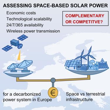 Meeting net-zero targets is challenging, as terrestrial renewables face intermittency and regional constraints. Here, we assess space-based solar power, a near-constant source, using a high-resolution, Europe-wide capacity-expansion and dispatch model. We assess two advanced designs: (1) a near-baseload, low-TRL (technology readiness level) heliostat design and (2) a partially intermittent, higher-TRL planar design, using NASA’s 2050 forecast. We find that the heliostat design can cut total system costs by 7%–15%, offset up to 80% of wind and solar, and reduce battery usage by over 70%, although hydrogen remains vital for seasonal balancing. The planar design, by contrast, is uneconomical at its forecast costs. Sensitivity analyses reveal relative cost thresholds for both designs, at which space-based solar shifts from cost-prohibitive to complementary and ultimately to a dominant baseload source for net-zero transitions. These results provide robust techno-economic benchmarks, highlighting new net-zero pathways and guiding policymakers and industry toward large-scale, low-intermittency renewables.
