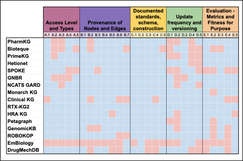 Biomedical knowledge graphs (KGs) are widely used across research and translational settings, yet their design decisions and implementation are often opaque. Unlike ontologies that more frequently adhere to established creation principles, biomedical KGs lack consistent practices for construction, documentation, and dissemination. To address this gap, we introduce a set of evaluation criteria grounded in widely accepted data standards and principles from related fields. We apply these criteria to 16 biomedical KGs, revealing that even those that appear to align with best practices often obscure essential information required for external reuse. Moreover, biomedical KGs, despite pursuing similar goals and ingesting the same sources in some cases, display substantial variation in models, source integration, and terminology for node types. Reaping the potential benefits of knowledge graphs for biomedical research while reducing duplicated effort requires community-wide adoption of shared criteria and maturation of standards such as Biolink and KGX. Such improvements in transparency and standardization are essential for creating long-term reusability, improving comparability across resources, providing a rigorous foundation for artificial intelligence models, and enhancing the overall utility of KGs within biomedicine.